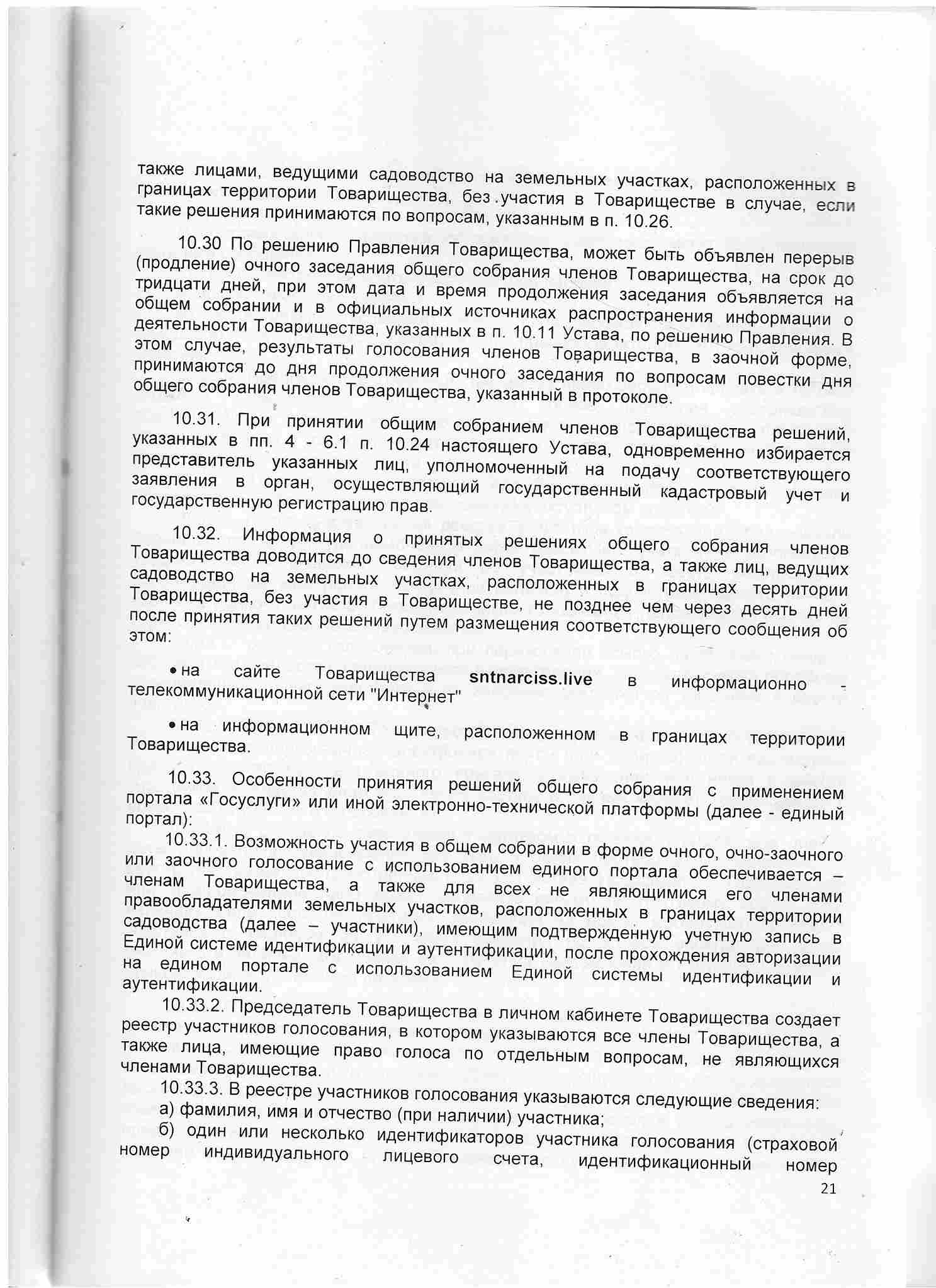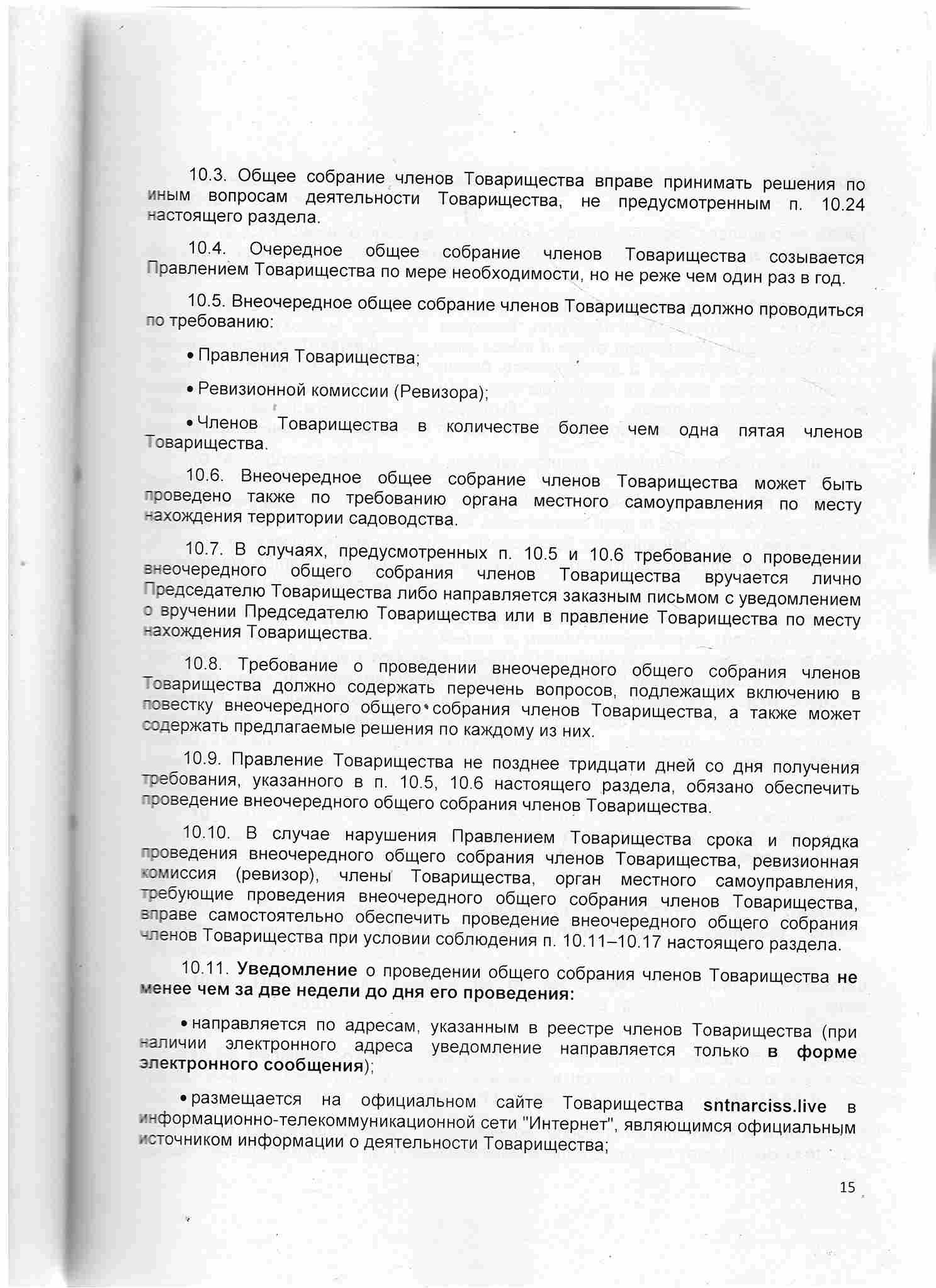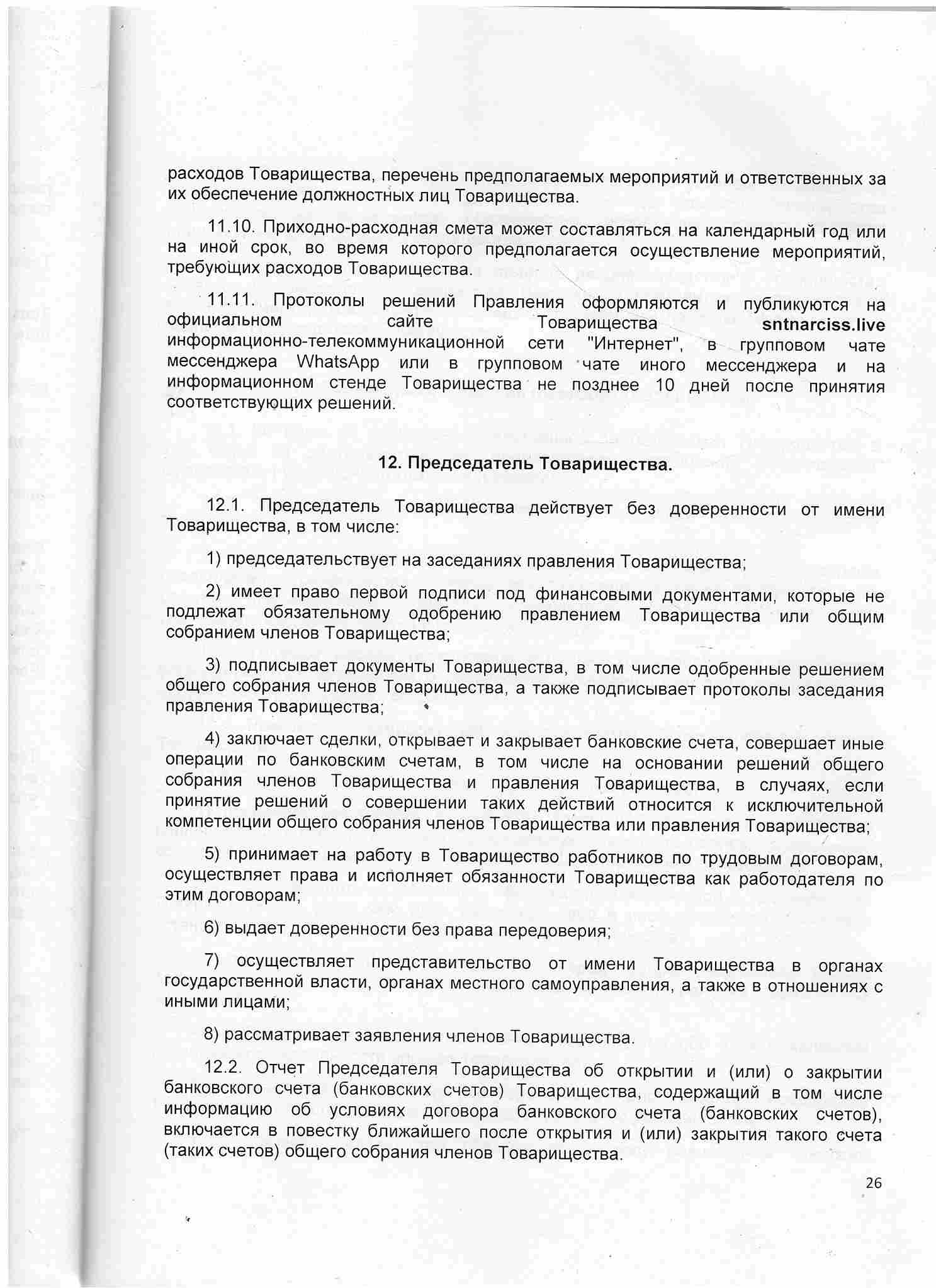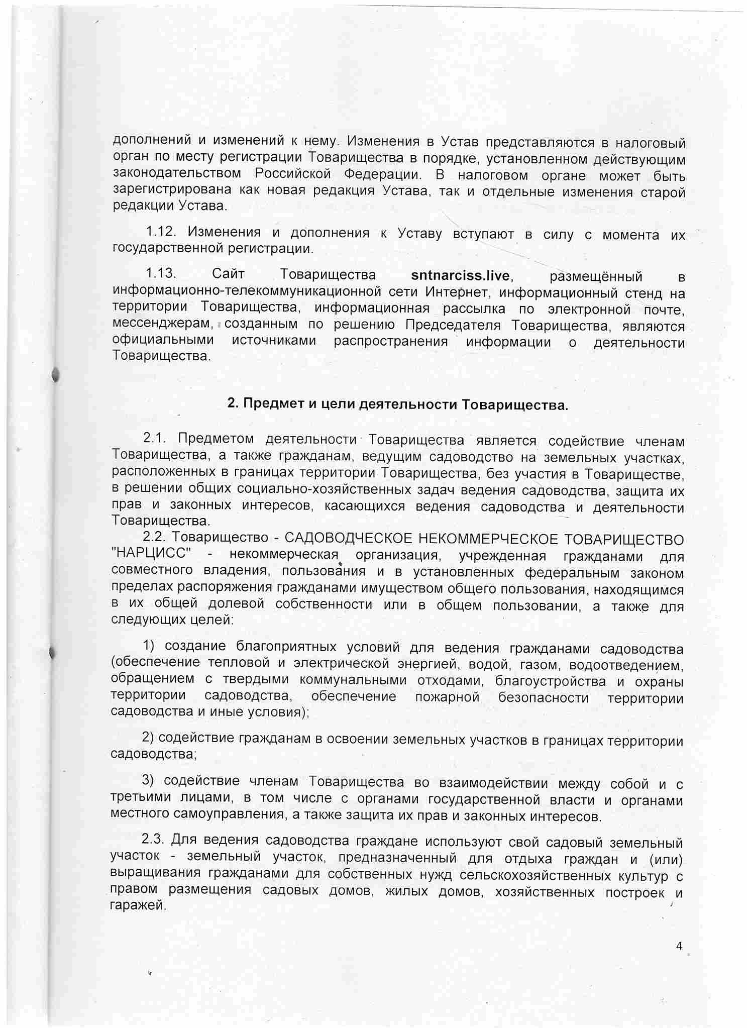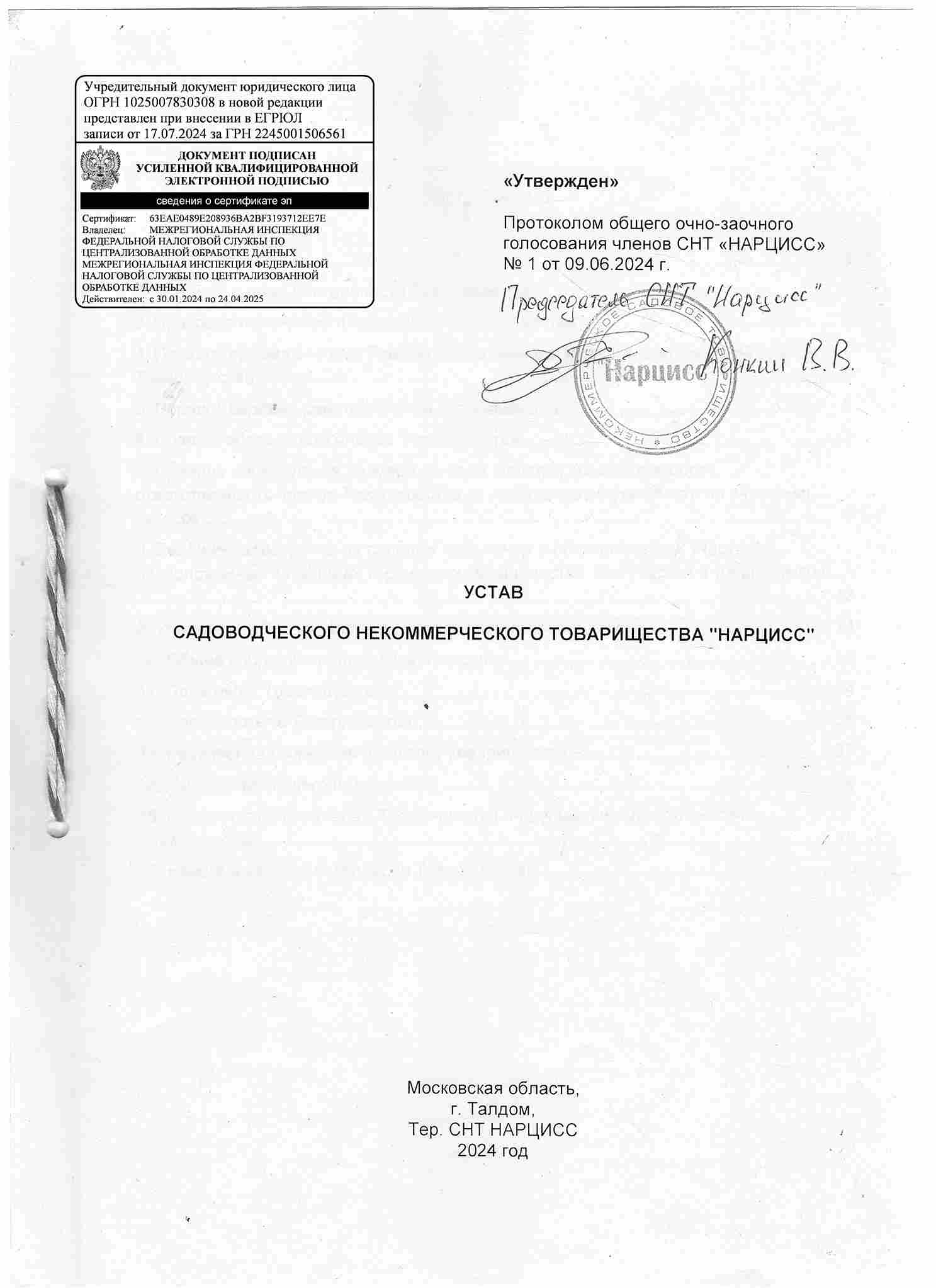 Устав СНТ «НАРЦИСС», 2024 год